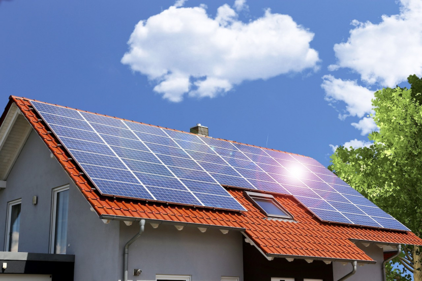 Hausdach mit Solarpaneelen
