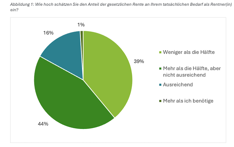 In einer rationalen Welt führt ein erkannter Bedarf zu einer Aktivität. Beim Thema Vorsorge für das Alter spielen jedoch viele Faktoren eine Rolle, sodass der binäre Zusammenhang von Vorsorgebedarf und Vorsorgemaßnahme nicht unmittelbar greift. Das erscheint eine Erklärung dafür, warum der seit Jahren antizipierte Bedarf an Altersvorsorge zusätzlich zur gesetzlichen Rentenversicherung eben nicht zu einer flächendeckenden Verbreitung von bAV geführt hat. 83 Prozent der befragten Arbeitnehmenden gehen von einer unzureichenden Altersabsicherung durch die gesetzliche Rentenversicherung aus.