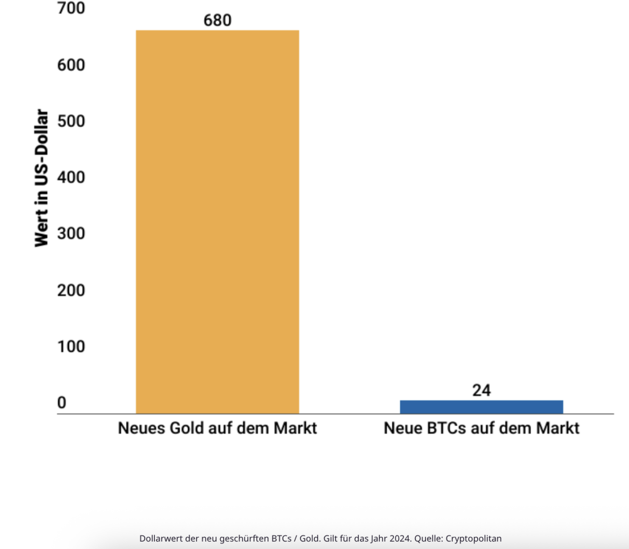 Die enorme Größe des Goldmarktes könnte sich langfristig als Nachteil erweisen. Hinzu kommt das stetige Neuangebot: Laut Infografik belief sich der Wert des 2024 neu geförderten Goldes auf etwa 680 Milliarden US-Dollar. Um den Preis stabil zu halten, ist daher eine dauerhaft hohe Nachfrage erforderlich. Bei Bitcoin liegt das jährliche Neuangebot hingegen bei rund 24 Milliarden US-Dollar – ein Faktor, der die Kryptowährung strukturell knapper macht.