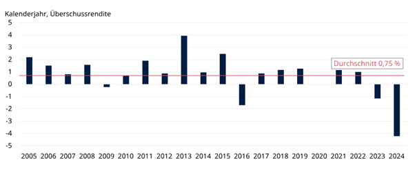 Abbildung 1: Globale Large-Cap-Aktienmanager hatten in den letzten Jahren zunehmend Schwierigkeiten, eine Outperformance zu erzielen …