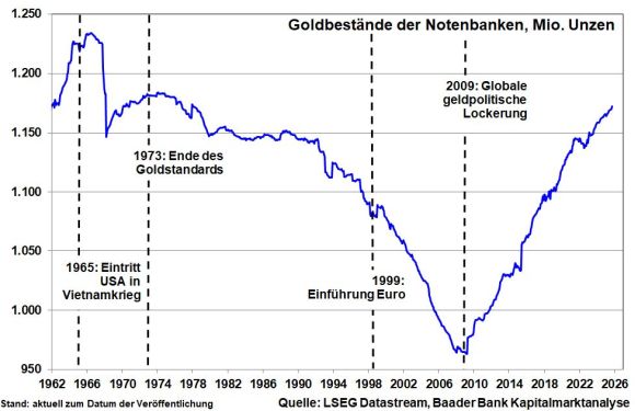 Gold bleibt der sachkapitalistische Rettungsanker angesichts der weltweiten Überschuldung und Bonitätsverschlechterung. Hinzu kommen anhaltende Inflationsrisiken bei dennoch stattfindenden Zinssenkungen in Amerika, was insgesamt einem Goldpreis Richtung 5.000 Dollar je Unze im nächsten Jahr die Bühne bereitet. Stützend wirkt sowieso, dass die internationalen Notenbanken weiter Goldbestände anhäufen. Insbesondere China treibt seine „Unabhängigkeitsbewegung“ von US-Anleihen voran und kauft so viel Gold wie kein anderes Land.