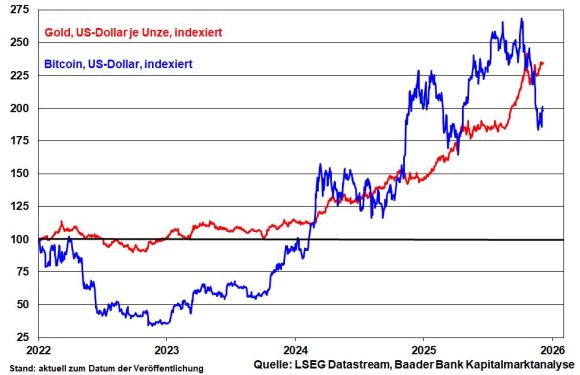 Grafik 12: Bitcoin und Gold seit 2022, indexiert