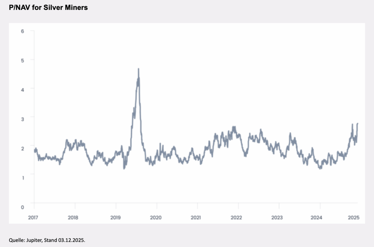 Obwohl wir die Fundamentaldaten für Gold, Silber und Minenaktien positiv bewerten, sollte bedacht werden, dass tatsächliche Ergebnisse deutlich von den Erwartungen abweichen können. Bergbauunternehmen zeichnen sich durch eine hohe operative Komplexität aus. Minenaktien sind von Natur aus volatil und die Bewertungen können auch bei steigenden Cashflows über längere Zeiträume hinweg niedrig bleiben. Zudem macht die wachsende Nachfrage aus der Industrie Silber zyklischer und empfindlicher gegenüber Veränderungen der wirtschaftlichen Rahmenbedingungen und der Anlegerstimmung. Grundsätzlich hängt die Entwicklung der Edelmetallpreise und Minenaktien nicht nur von der physischen Verfügbarkeit und Nachfrage ab, sondern auch von Kapitalbewegungen, dem Vertrauen der Marktteilnehmer und makroökonomischen Faktoren, die sich rasch ändern können.