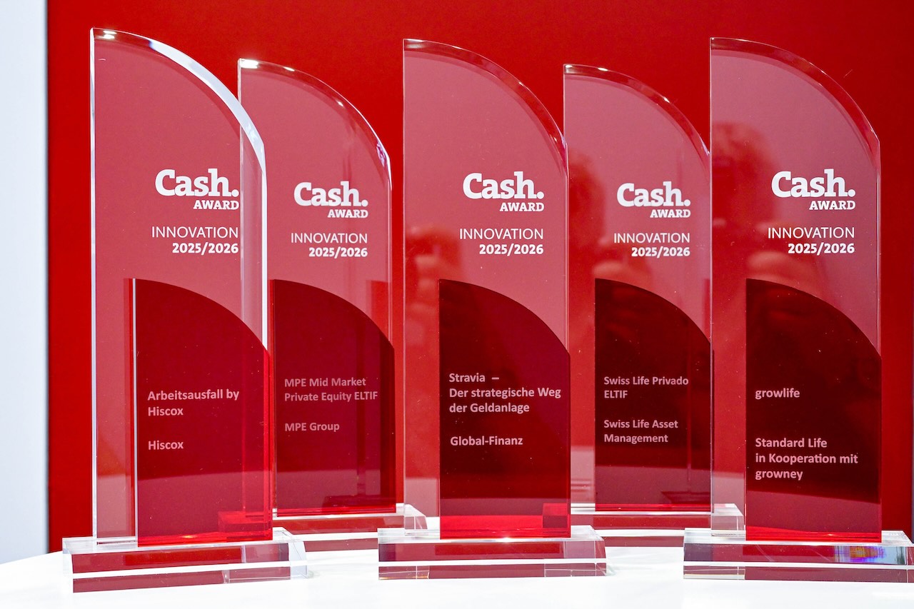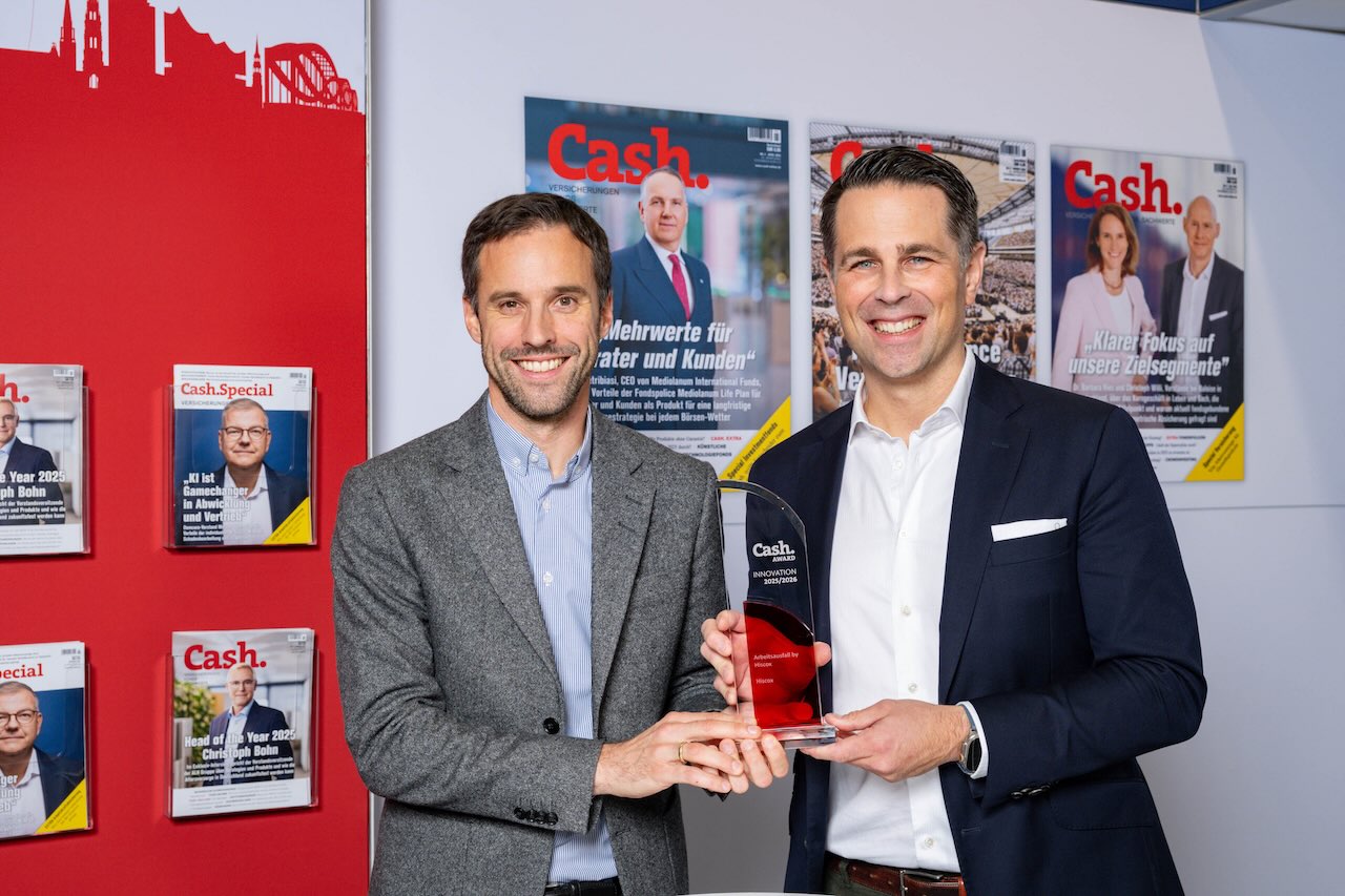 In der Sparte Versicherungen ging der Award an Hiscox. Prämiert wurde das Modul Arbeitsausfall by Hiscox, das Freelancer und kleine Unternehmen absichert, wenn wichtige Mitarbeiterinnen und Mitarbeiter ausfallen. Tim Bethge, Deutschlandchef von Hiscox, sowie Franz Kupfer, Product Head Professional Indemnity, D&O, Property & Event, nahmen den Award von Cash.-Chefredakteur Frank O. Milewski entgegen. Kupfer über das Produkt: Der Unterschied von klassischen BU-Versicherungen zu unserer Lösung liegt darin, dass wir eine Versicherung für das Unternehmen bzw. den Freelancer geschaffen haben, die bei Ausfall die Leistung unkompliziert und automatisch an den Betrieb auszahlt, unabhängig vom tatsächlich entstandenen Schaden. Auch beim Abschluss stellen wir keine Gesundheitsfragen, hinter deren Antwort wir uns im Schadenfall „verstecken“ könnten.