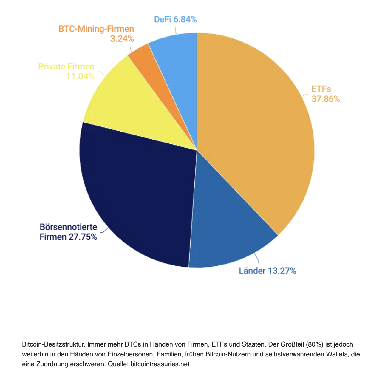 Allerdings hat sich die Struktur des Bitcoin-Marktes in den vergangenen Jahren spürbar verändert. Ein wachsender Anteil der Coins befindet sich heute in den Händen von ETFs, Staaten und börsennotierten Unternehmen, die in der Regel langfristiger agieren. Auch bei privaten Anlegern ist ein größerer Teil der Bestände in selbstverwahrten Wallets gebunden. Diese veränderte Eigentümerstruktur könnte extreme Kursbewegungen dämpfen, auch wenn weiterhin ein erheblicher Teil der Coins von Retail-Anlegern gehalten wird.