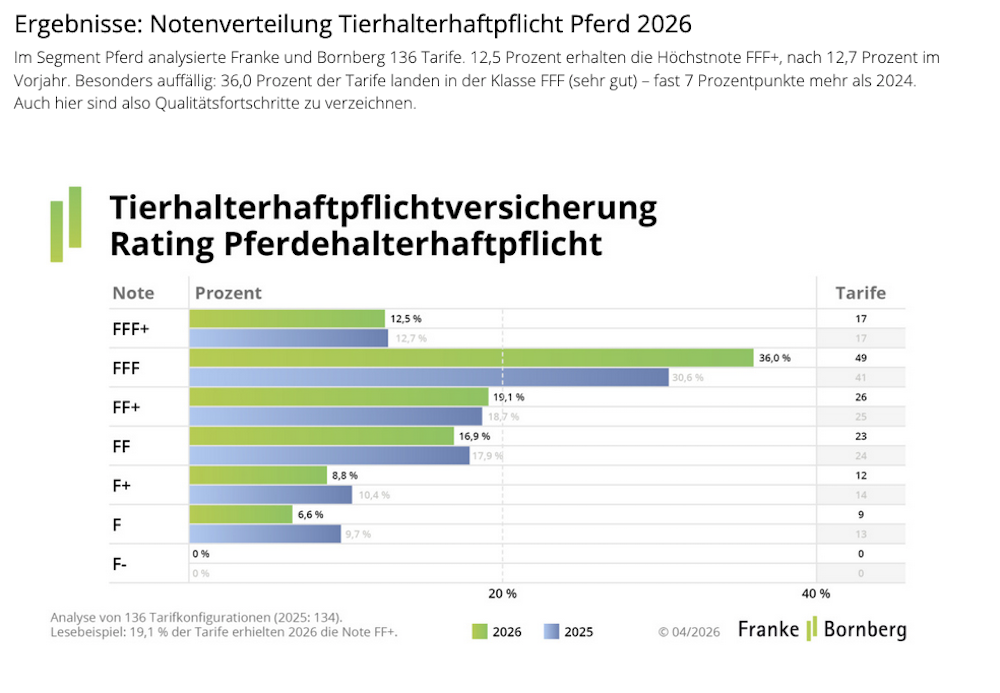 „Der Markt für Tierhalter-Haftpflicht wächst, und das ist gut so. Aber Wachstum allein schützt niemanden. Wer als Hundehalter oder Pferdebesitzer einfach den günstigsten Tarif wählt, riskiert im Ernstfall eine böse Überraschung – und der Ernstfall kann teuer werden“, reümiert Michael Franke, geschäftsführender Gesellschafter der Franke und Bornberg.