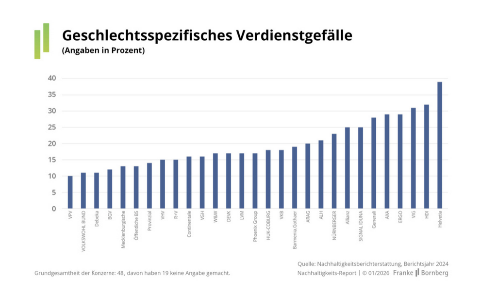 Im sozialen Bereich zeichnet der Report ein gemischtes Bild. Als Arbeitgeber haben viele Versicherer in den vergangenen Jahren aufgeholt – flexible Arbeitszeiten, Gesundheitsförderung und Weiterbildungsangebote sind weit verbreitet. Dennoch bleiben strukturelle Defizite, vor allem bei der Gleichstellung.