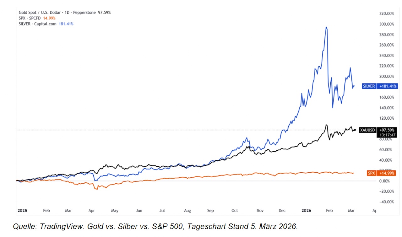 In Zeiten erhöhter geopolitischer Spannungen fungiert Gold tendenziell als primärer Stabilisator innerhalb eines Portfolios. Silber kann die Position ergänzen, doch seine Doppelrolle als Edel- und Industriemetall macht es empfindlicher gegenüber Wachstumserwartungen.