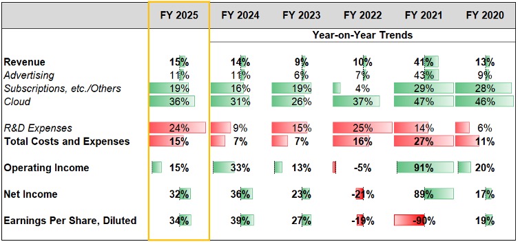 | Alphabet, vor allem bekannt unter dem Namen seines größten Tochterunternehmens Google, hat am 4. Februar seine Ergebnisse für das Geschäftsjahr 2025 vorgelegt. Das zu einem Zeitpunkt, an dem der Kapitalmarkt KI-Investitionen zunehmend nicht mehr nur akzeptiert, sondern deren wirtschaftlichen Ertrag aktiv einfordert. Die Zahlen bestätigen Googles operative Stabilität, liefern jedoch nur begrenzte Antworten auf die zentrale Frage des Marktes: Wie stark zahlt sich der massive KI-Einsatz bereits heute im Kerngeschäft aus? Solide Trends bei Umsatz und Ergebnis Google erzielte im Geschäftsjahr 2025 ein Umsatzwachstum von 15 Prozent und übertraf damit die im dritten Quartal implizierte Erwartung von rund elf Prozent. Auch auf Ergebnisebene zeigte sich eine positive Überraschung: Das verwässerte Ergebnis je Aktie stieg um 34 Prozent und lag damit zwei Prozentpunkte über dem zuvor erwarteten Wachstum. Diese Entwicklung fügt sich nahtlos in die seit 2023 beobachteten stabilen Wachstumsstrukturen ein. |