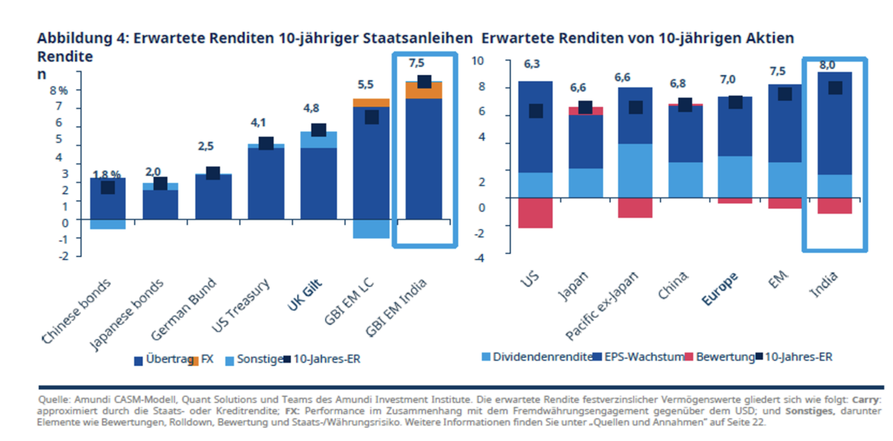 Neue Diversifizierungsmotoren gewinnen daher an Bedeutung. Wir sind der Ansicht, dass indische Vermögenswerte – sowohl Aktien als auch Anleihen – als langfristige Einzelallokationen in Betracht gezogen werden sollten. Sie können strukturelles Wachstum und attraktive Diversifizierungsvorteile für globale Portfolios bieten.