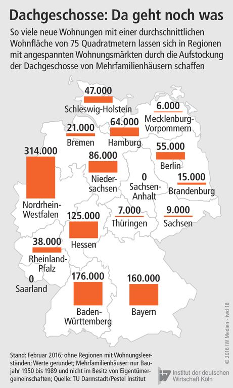 Bis 2020 müssten deutschlandweit jährlich mehr als 350.000 Wohnungen gebaut werden, um den erwarteten Bedarf zu decken, wie das Institut der deutschen Wirtschaft Köln (IW) berechnet hat.