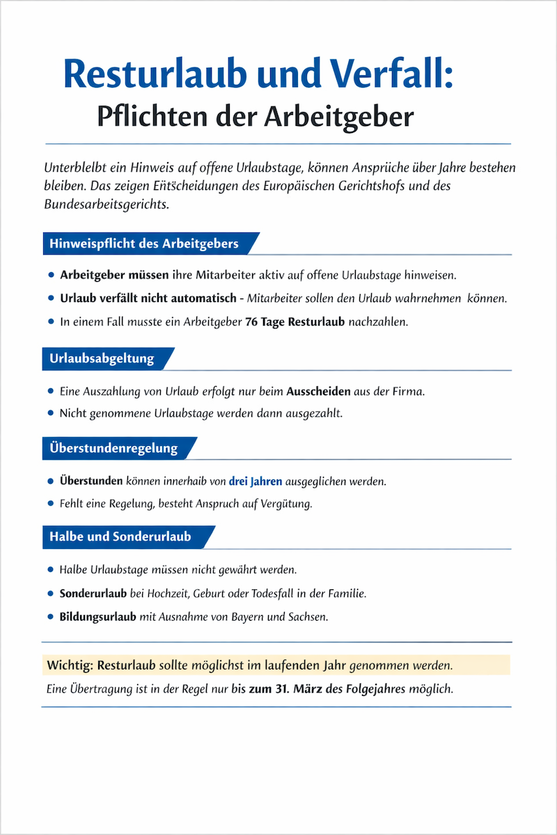 Resturlaub und Verfall: Pflichten der Arbeitgeber