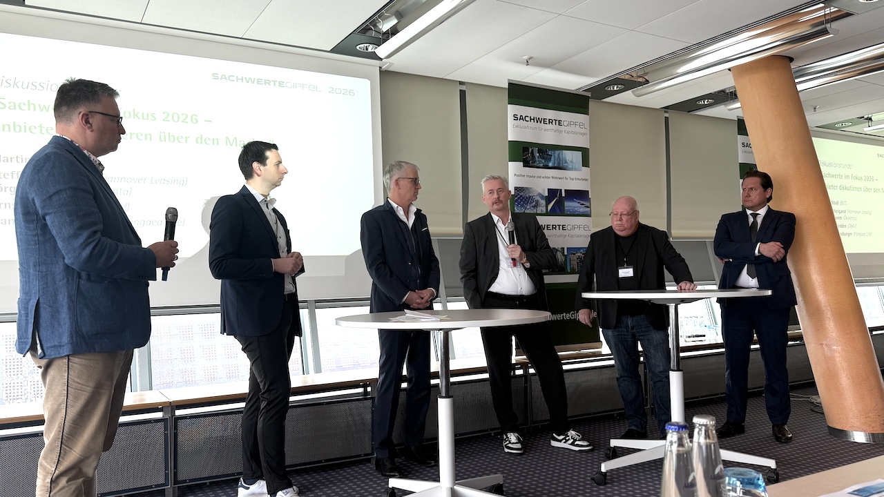 Diskussionsrunde (von links): Moderator Markus Gotzi, Daniel Regensburger (Pangaea Life), Jens Freudenberg (BVT), Jörg Busboom (Ökorenta), Ernst Rohwedder (DSKV), Steffen Weigand (Hannover Leasing)