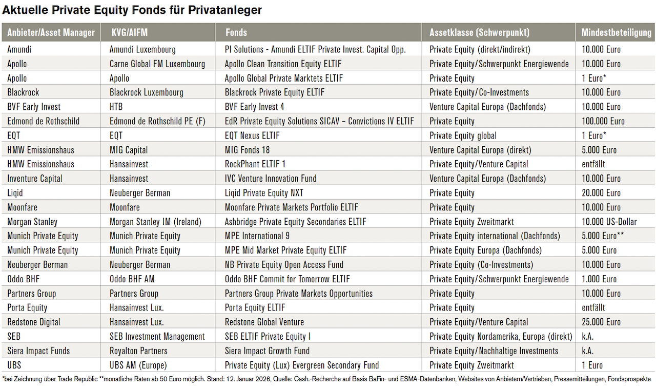 Die Private-Equity-Branche hat nach den Turbulenzen der vergangenen Jahre also noch einiges aufzuarbeiten. Die Aussichten für 2026 sind jedoch grundsätzlich positiv und es ergeben sich spezielle Chancen in ausgewählten Segmenten und durch selektive Investitionen. Zudem kann ein gewisser Anteil Private Equity dazu beitragen, ein gesamtes Anlageportfolio zu stabilisieren.
