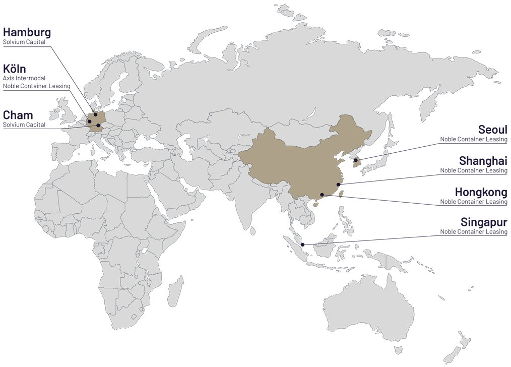 Die Solvium-Unternehmensgruppe umfasst einige renommierte Unternehmen, darunter die Noble Container Leasing Ltd., einen der führenden Containermanager im asiatischen Markt mit Standorten in Singapur, China und Südkorea, sowie die Axis Intermodal Deutschland GmbH aus Köln, das größte Vermietunternehmen für Wechselkoffer in Europa.