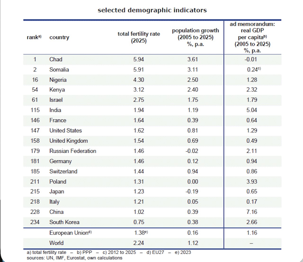 Kein Zweifel jedoch, geopolitisch ist die EU ein Zwerg und braucht die USA immer noch als Schutzmacht gegenüber Russland. Nicht nur ist die EU auch nicht annähernd so etwas wie ein Nationalstaat mit gemeinsamer Finanz- und Verteidigungspolitik, sie leidet zudem unter schwachem Wirtschaftswachstum und etwas höherer Arbeitslosigkeit als in den USA und China. In den vergangenen 20 Jahren ist das reale BIP pro Kopf im Durchschnitt um 1,16 Prozent gestiegen. Die vergleichbaren Zahlen für die Vereinigten Staaten und China lagen in diesem Zeitraum bei 1,29 und 7,16 (!) Prozent. Die Bevölkerung stagnierte mehr oder weniger in diesen Jahren, während die Fertilitätsrate nur 1,38 beträgt und damit erheblich unter dem Wert von 2,1 liegt, der mittelfristig für die Stabilisierung der Bevölkerungszahl nötig ist. Ohne die steigende Lebenserwartung und die Netto-Zuwanderung würde die Bevölkerung der EU schon längst schrumpfen.