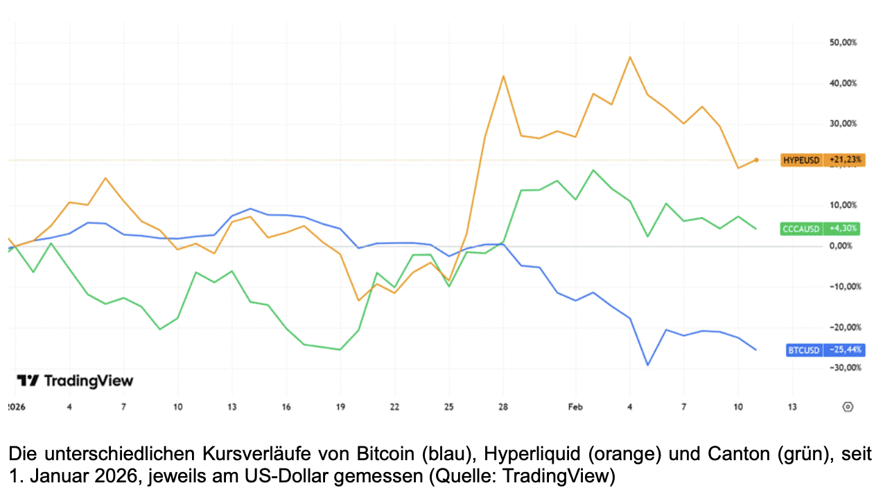 Diesen Kryptos ist generell gemein, dass es sich um Projekte mit messbarer Nutzung und wiederkehrenden Einnahmeströmen auf Protokollebene handelt. Hyperliquid etwa profitierte von stark wachsender Derivateaktivität auf der eigenen Plattform, während das Canton-Netzwerk durch institutionelle Integrationsprojekte Rückenwind erhielt. In beiden Fällen spielten reale Transaktionen, Gebühreneinnahmen und tatsächliche institutionelle Nutzung eine größere Rolle als spekulative Rotation.