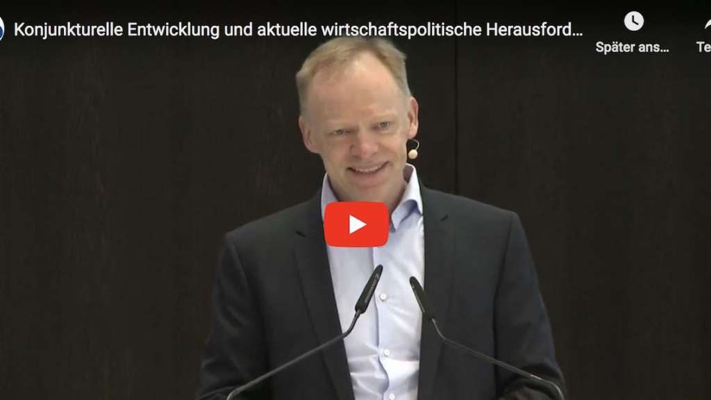 Prof. Clemens Fuest, Chef des ifo Instituts, spricht beim ifo Branchen-Dialog zum Thema "Konjunkturelle Entwicklung und aktuelle wirtschaftspolitische Herausforderungen" für Deutschland.